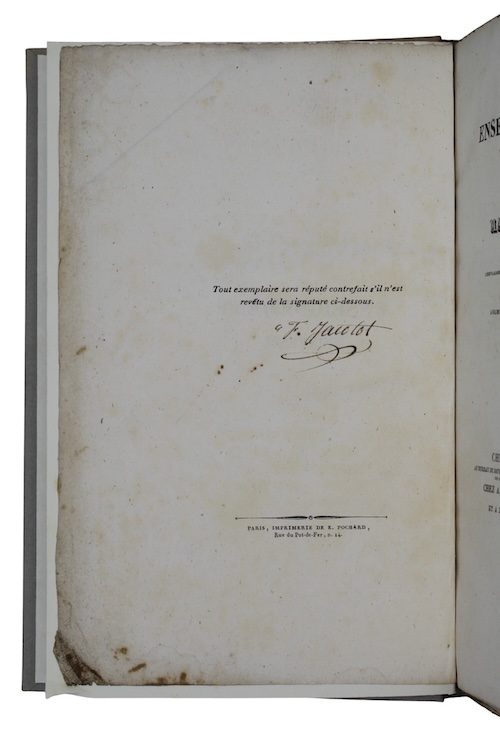 A revised edition of French pedagogue Joseph Jacotot's (1770-1840) highly influential treatise promoting universal, egalitarian education.