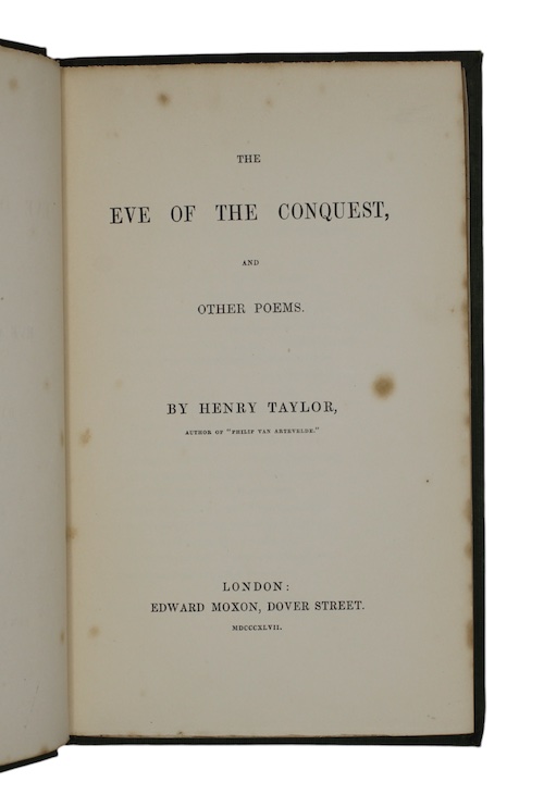The first edition of dramatist, poet, and Colonial Office official Henry Taylor's (1800-1886) second published collection of verse; the titular poem of which being a romance set against the backdrop of the imminent Norman invasion.